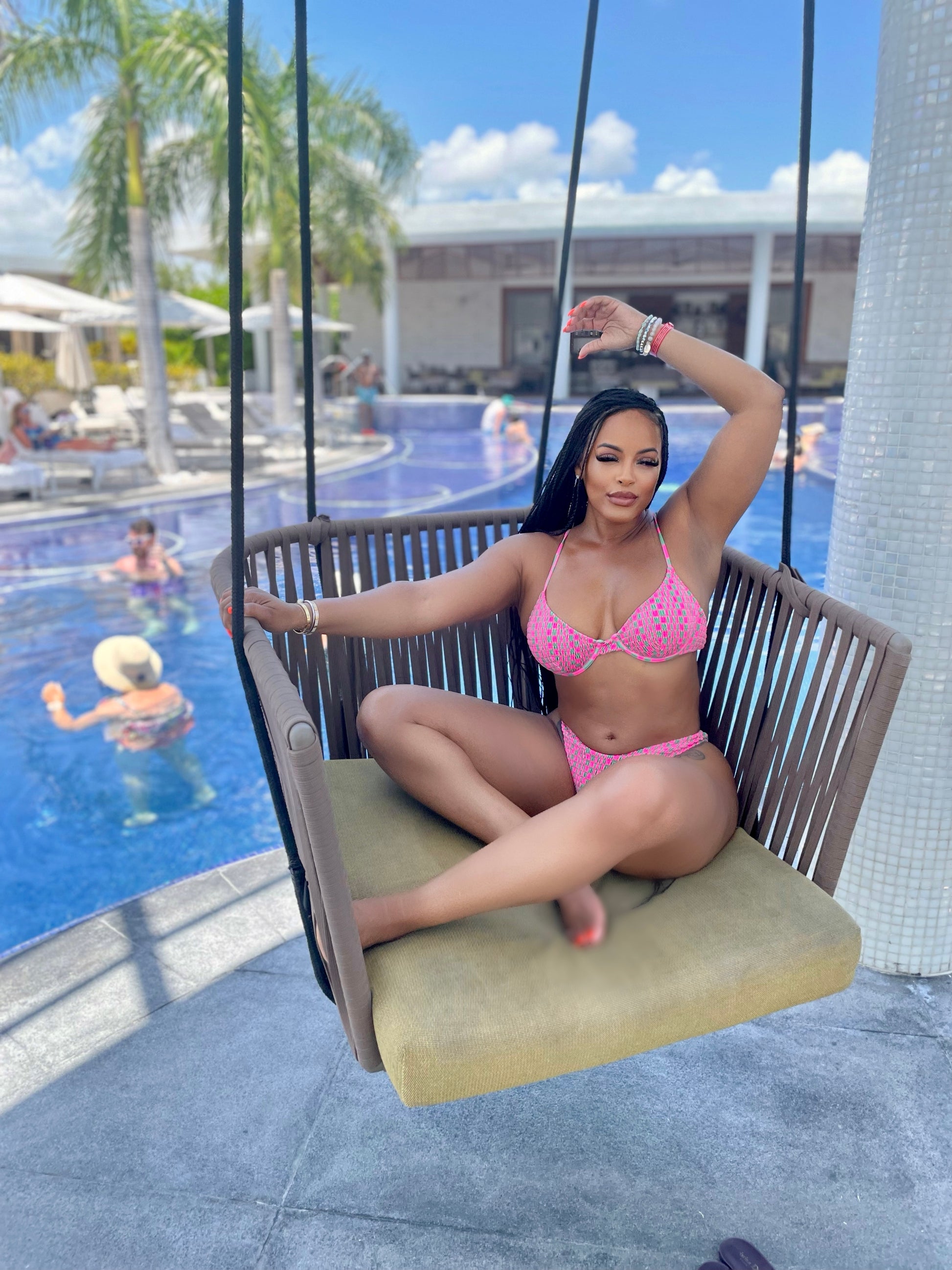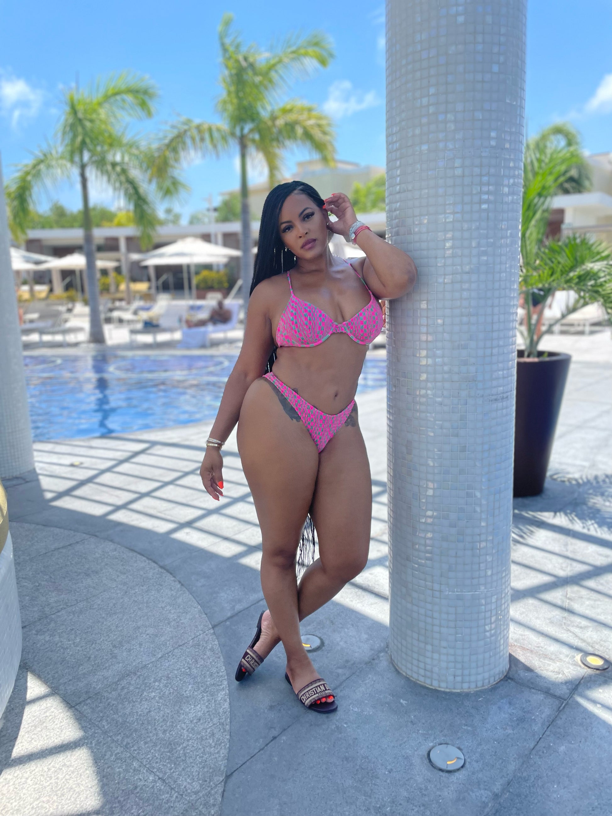 Pink and green 2 piece, that’s guaranteed to make heads turn.