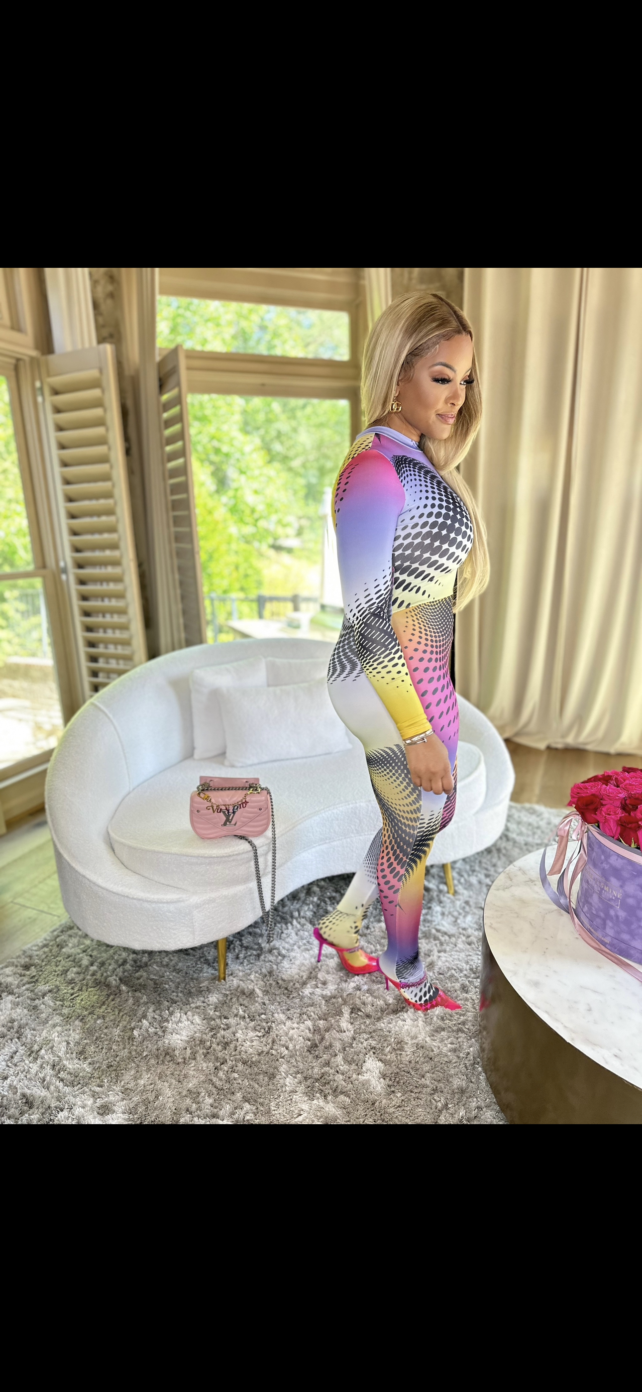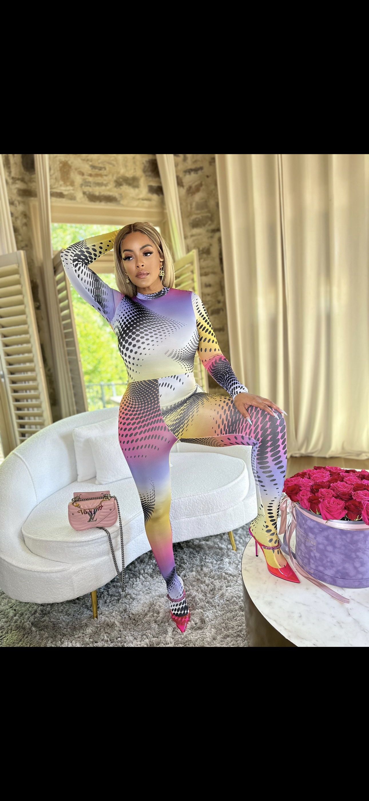 Colorful jumpsuits comfortable stretch with footed bottom.